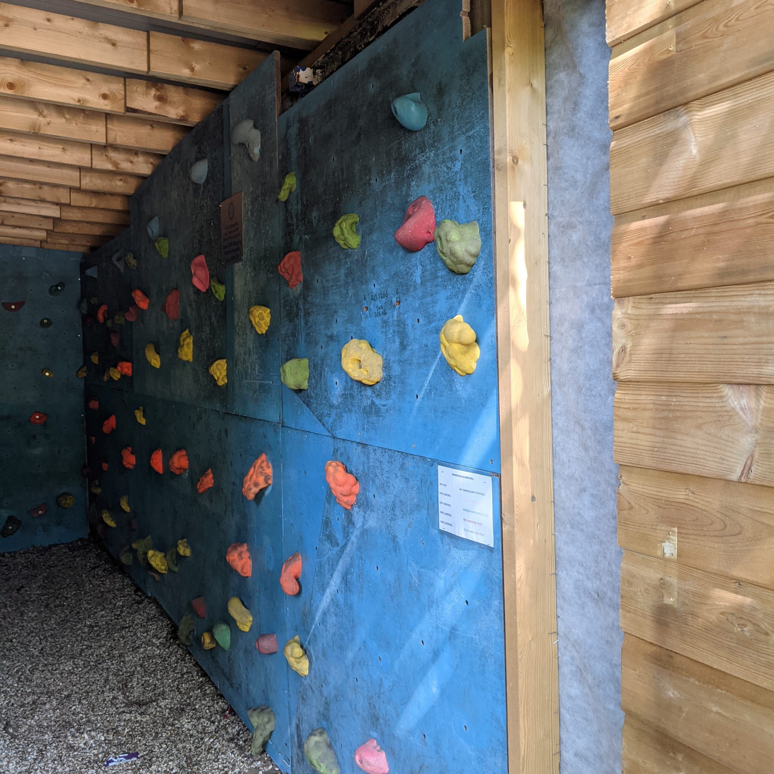 BOULDERING WALL – There is an under-cover 8 panel bouldering wall set on 3 sides with a range of challenges. Its starts easy by the gate, then just gets harder as you work clockwise. Can you stay on the whole way round? A group of 12 can book it for an hour although everyone needs to be over 6 years old. Due to a generous local donation, this activity is free. It is available on a ‘first come, first served’ basis.